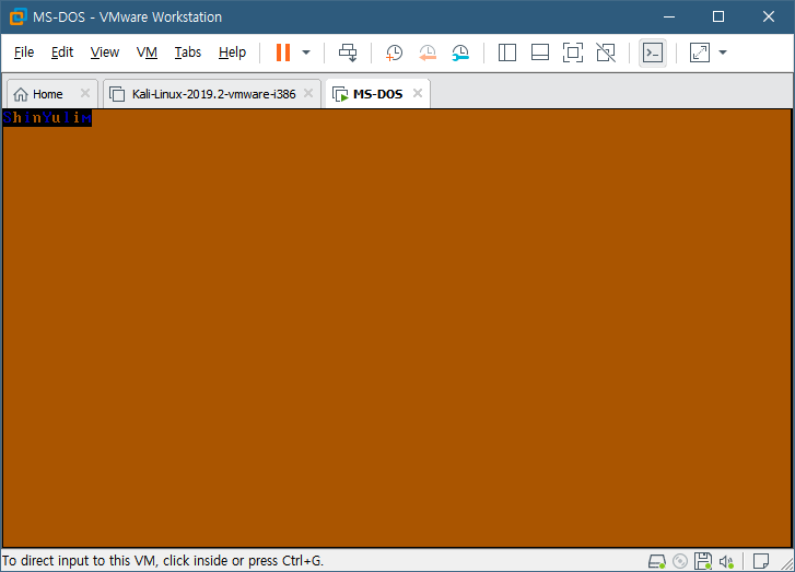 vmware를 사용, MS-DOS로 가상머신을 만들어두었다. 이후 부팅 디스크를 floppy disk로 추가하였더니 아래와 같이 의도한대로 부팅되는 것을 볼 수 있었음.