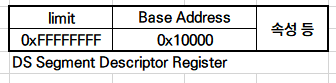 *Base Address : 세그먼트의 시작. 리얼모드에서 CS레지스터에 시작 주소를 넣어 두는 것과 같은 개념. CPU에서는 이 Base Address를 찾아 CS, DS등의 레지스터에 저장한다.