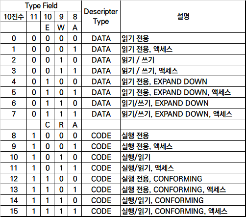 - TYPE의 최상위 비트 : 코드/데이터 세그먼트의 구분 지정자
