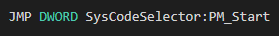 CS에는 SysCodeSelector, EIP 레지스터에는 PM_Start: 레이블의 주소 값이 들어가 CPU가 PM_Start: 부터 명령을 실행하게 됨.