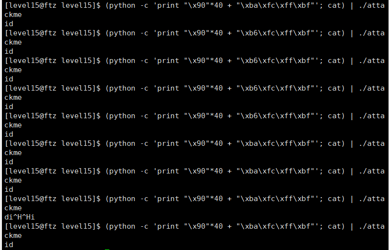 왜 뒤에 attackme까지 같이 실행하는걸까요? 심지어 저기 원래 level15라서 뒤에 attackme 파일이 없음. 흡사 에러로 에러를 막은 기분입니다.