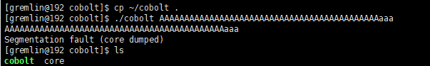 gremlin의 홈 디렉토리에 있는 colbolt.c를 확인해보면 첫번째 인자값을 버퍼에다 복사하여 버퍼를 출력하는 코드이다. 두가지 방법을 이용하여 문제를 풀어보도록 하자.