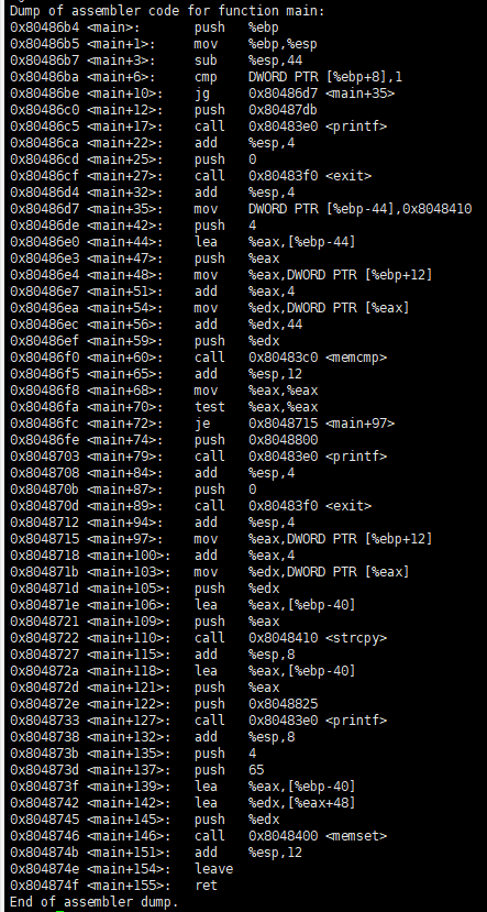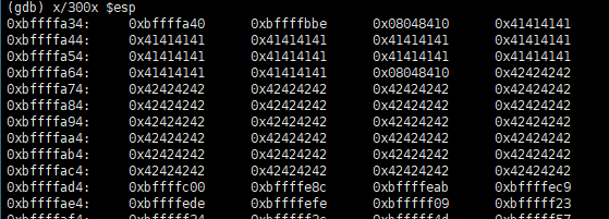 메모리를 보면 버퍼의 주소는 0xbffffa40, ret+4의 주소는 0xbffffa70임을 알 수 있다.
