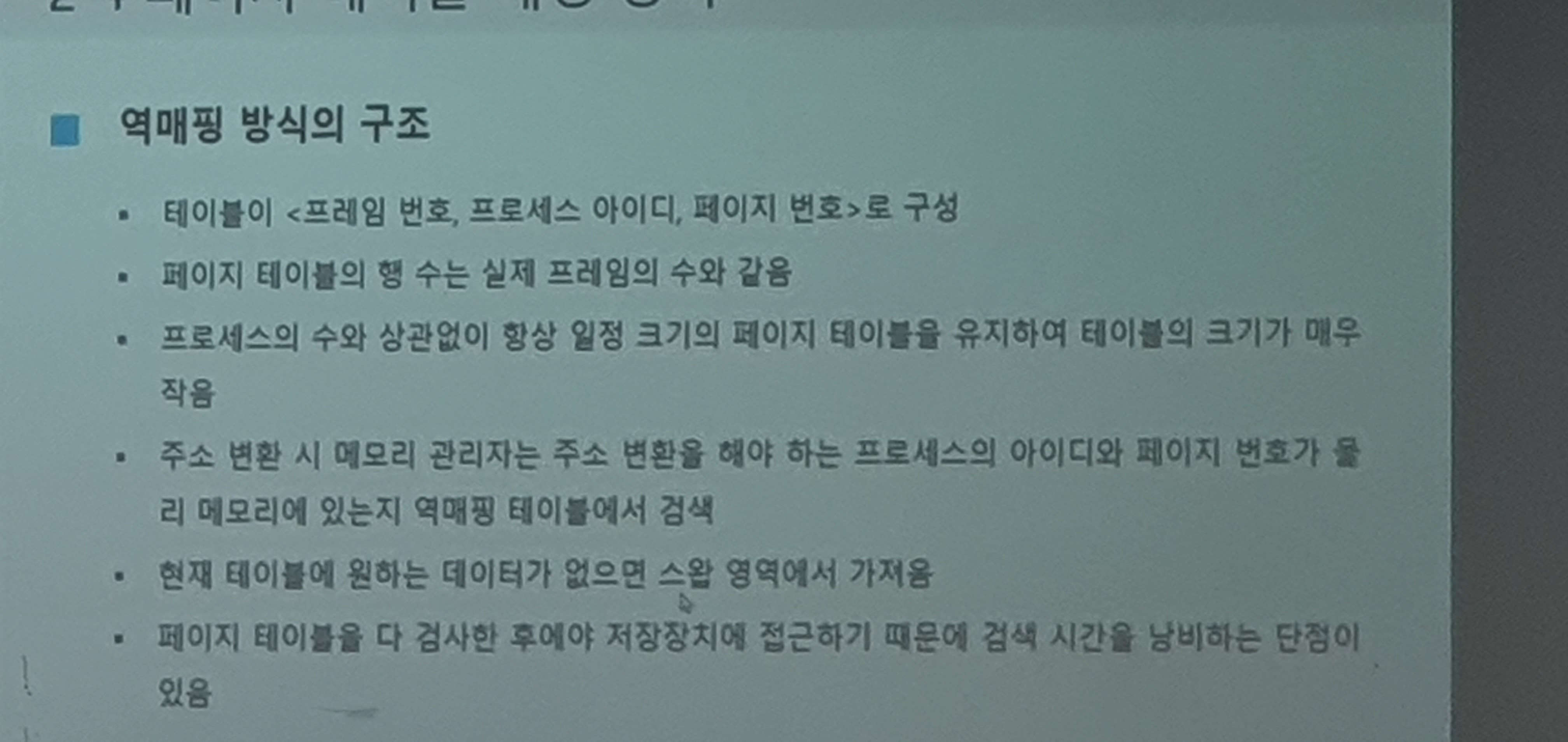 - 메모리를 관리할 때도 매핑 테이블을 작성하여 관리함.