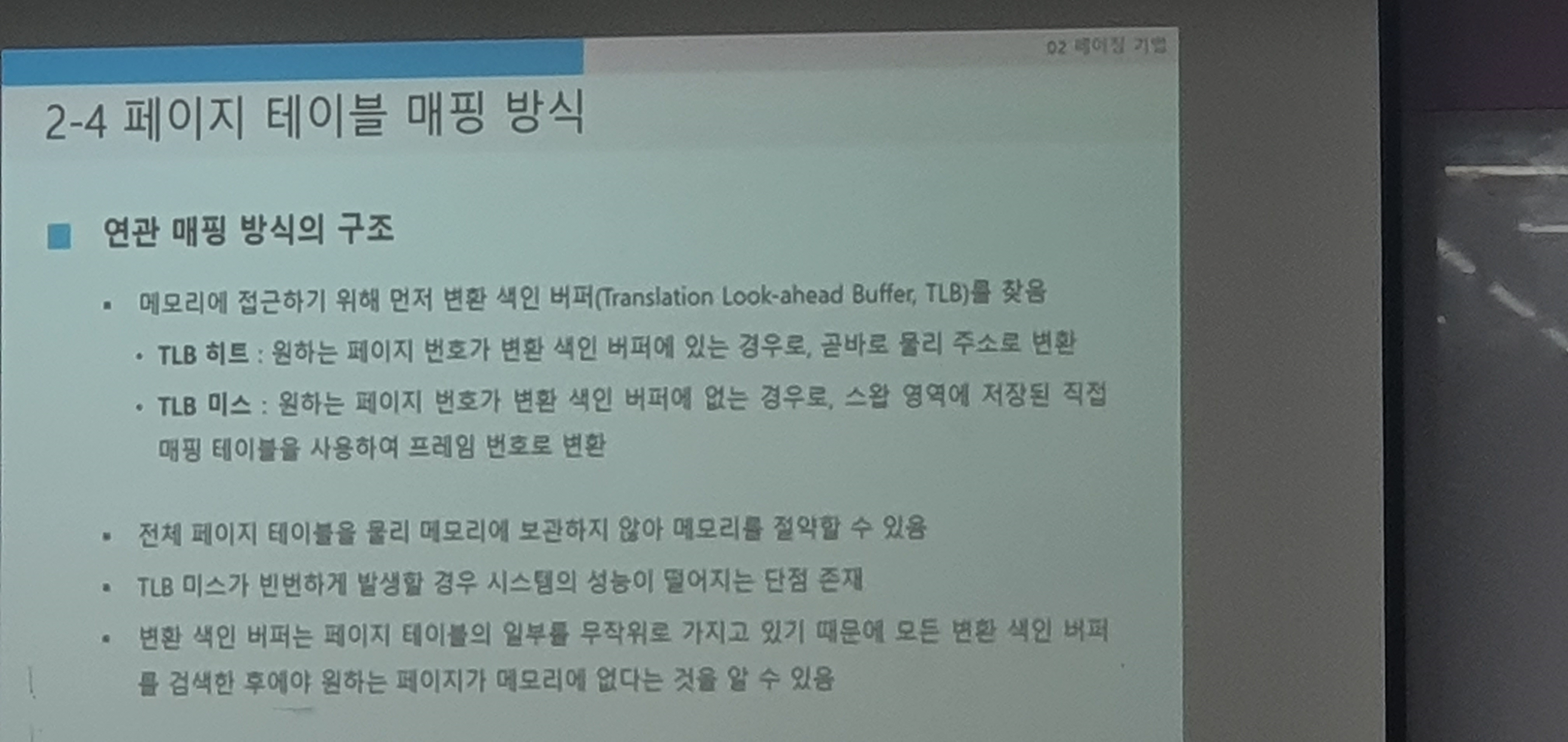 * 어떤 페이지가 어떤 프레임에 있는지에 대한 매핑 정보는 페이지 테이블에 담겨있음